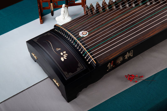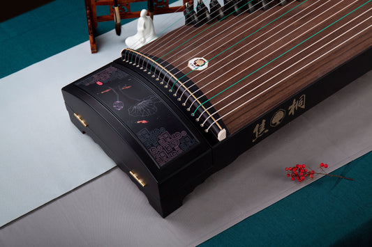 墨荷 'Ink Lotus' Basic Beginner's Guzheng with Lacquer Painting on Ebony 黑檀木彩绘基础系列古筝