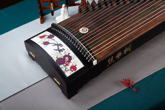鳥棲紅榴 'Birds Perching on Red Pomegranates' Basic Beginner's Guzheng with Lacquer Painting on Ebony 黑檀木彩绘基础系列古筝